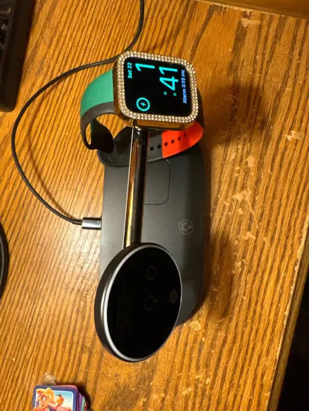 "Wow, best purchase ever! Charges my iPhone, Apple Watch, and AirPods all at once – no more tangled cables. The magnetic feature is solid – no more worries about my phone slipping. Love having everything in one spot, super neat!💯🔥"